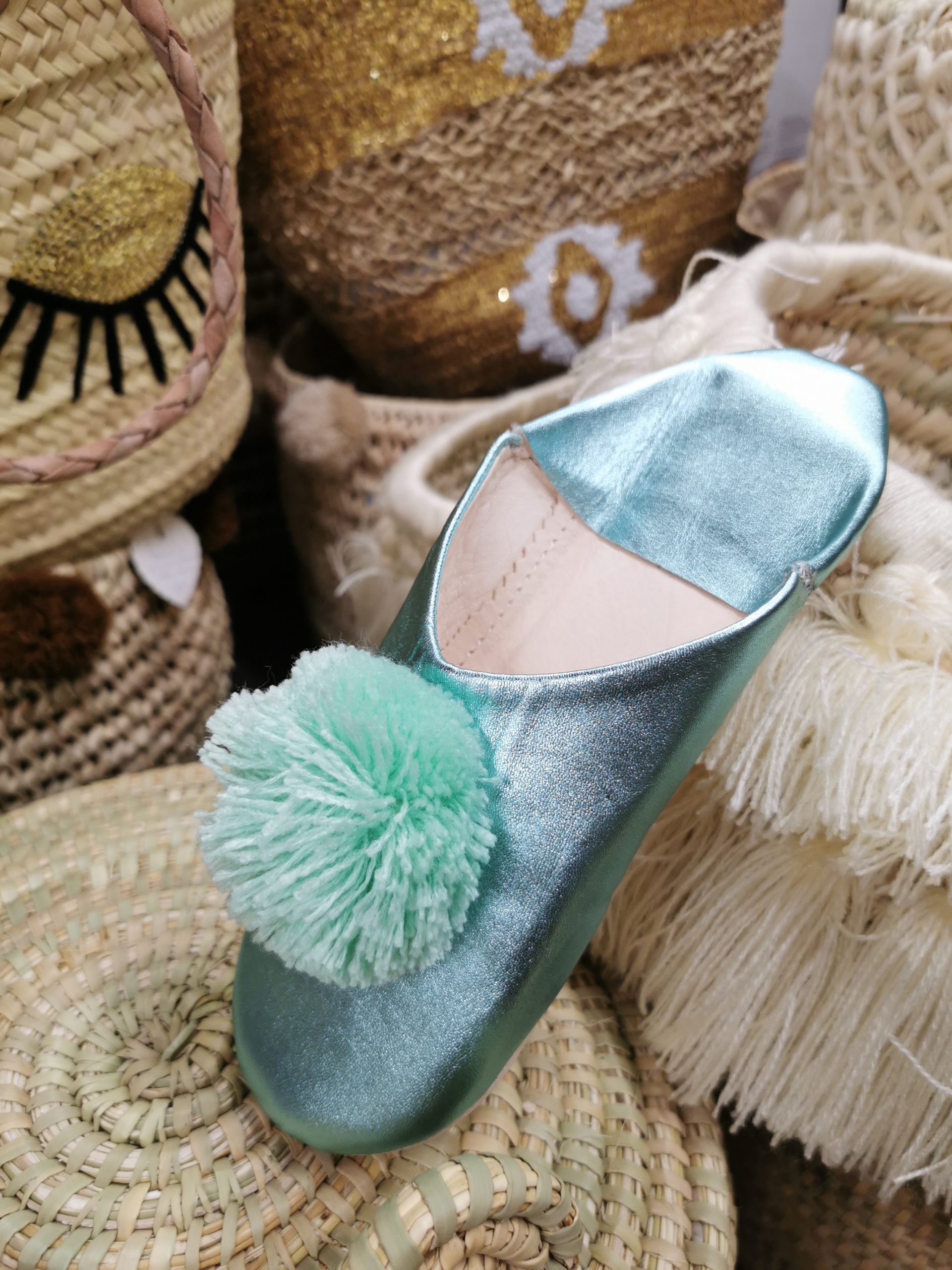 La beauté de ces babouches ! On les aime d’amour ! Tellement jolies, originales et classes avec ce cuir irisé rehaussé d’un pompon de la même couleur.