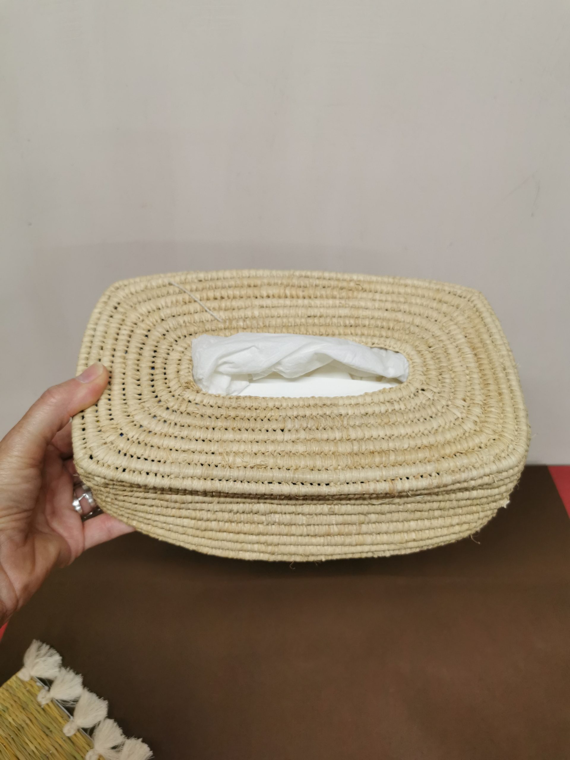 La teinte dorée du raphia s’intègre avec tout type de décoration. On ne se lasse pas de ces idées géniales des artisans marocains !