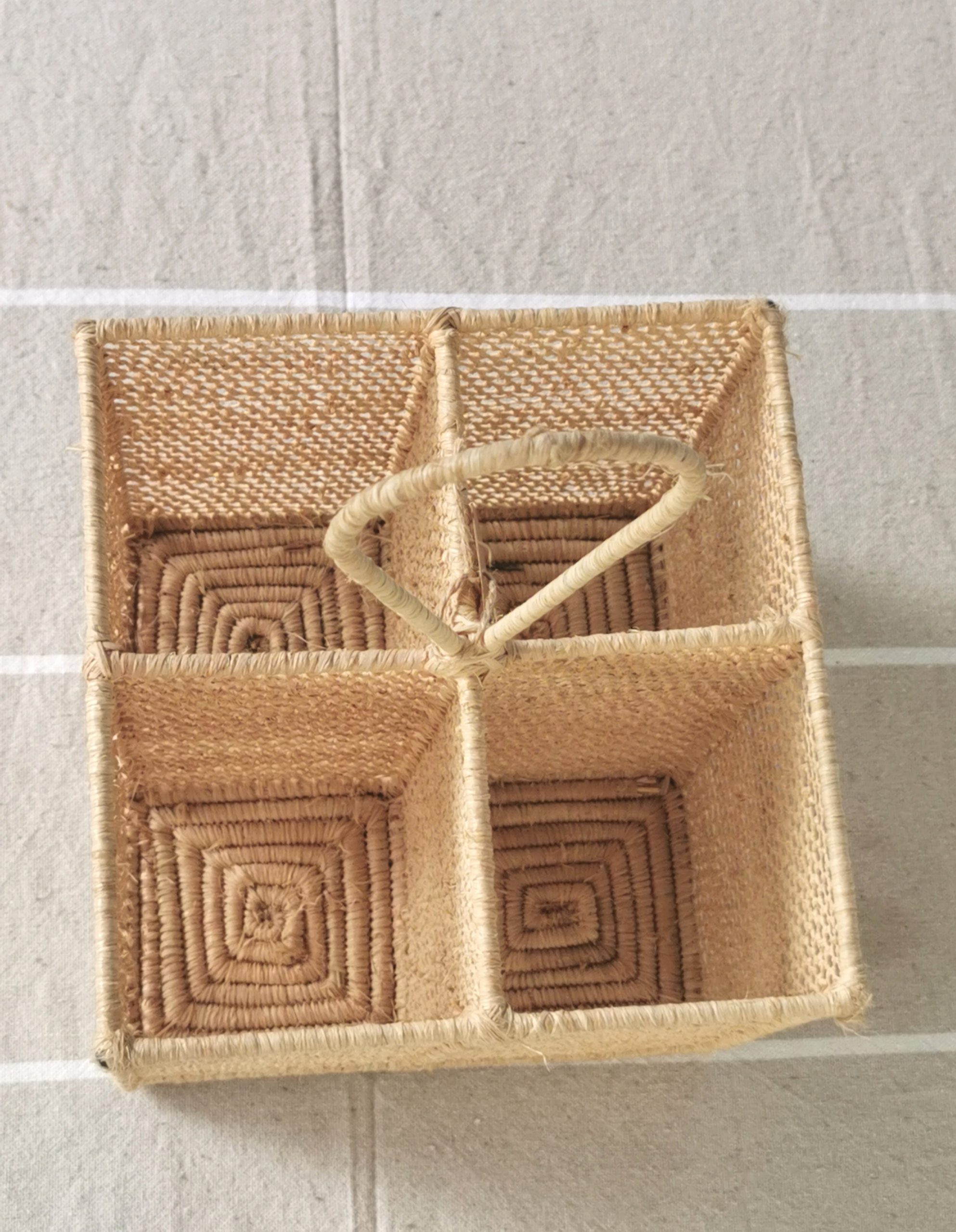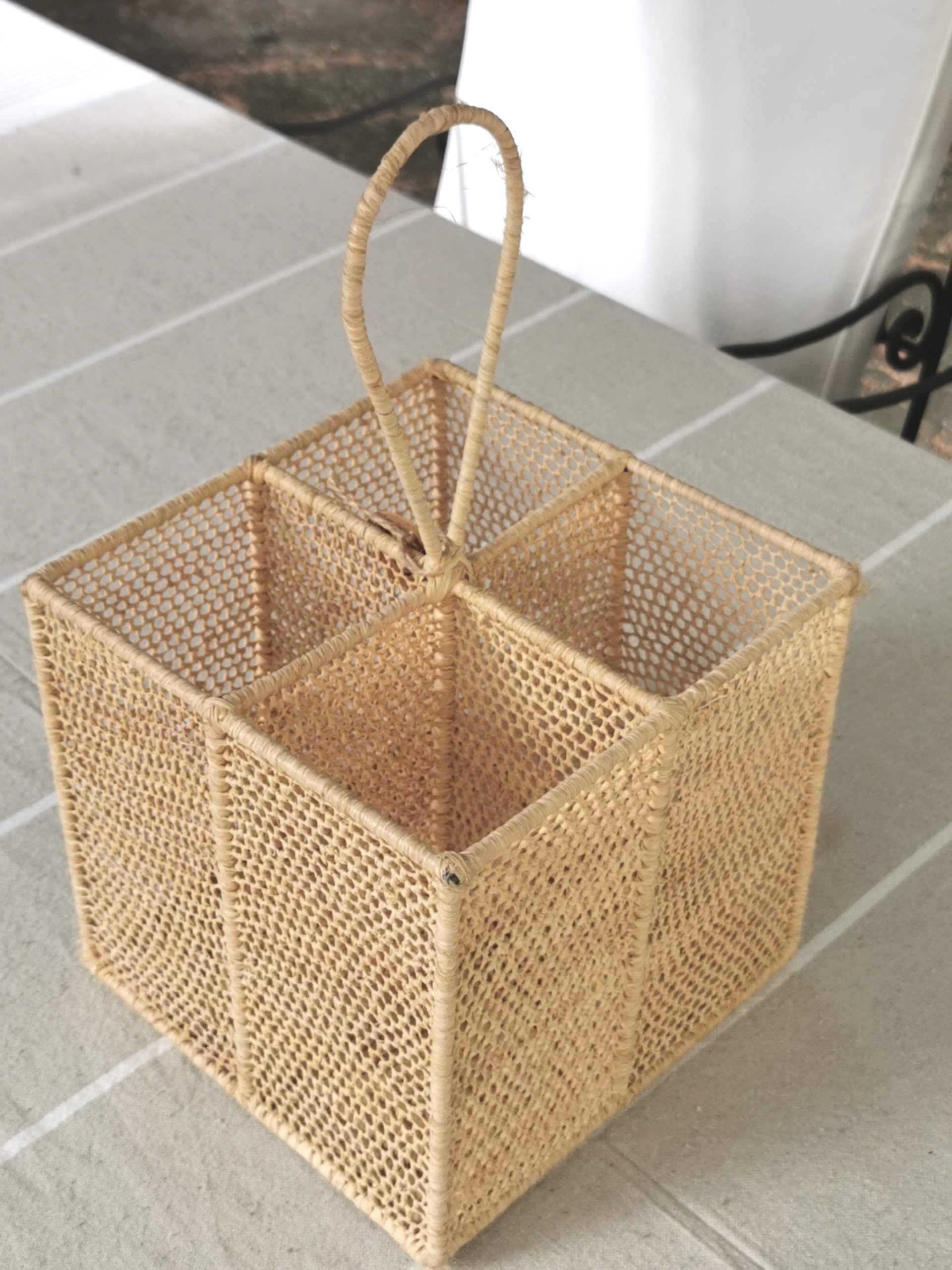 Une jolie pièce à poser sur la table pour présenter les bouteilles. Ensemble de 4 carrés tressés en raphia, solide grâce à son armature en fer, ce porte bouteille fera un très bel effet sur vos tables d’été !